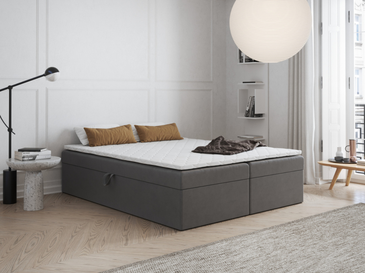 🔹 Dwa pojemne schowki – więcej miejsca na przechowywanie – Model Milo 2 wyposażony został w dwa duże pojemniki na pościel, które pomieszczą nie tylko kołdry i poduszki, ale również koce, narzuty czy sezonową odzież. Dzięki temu w Twojej sypialni zawsze zapanuje porządek, a wszystkie niezbędne rzeczy będą pod ręką. Mechanizm otwierania jest lekki i wygodny w obsłudze, co ułatwia codzienne użytkowanie. 🔹 Minimalistyczna forma – idealna do każdej aranżacji – Brak zagłówka sprawia, że łóżko doskonale komponuje się z różnymi stylami wnętrz – od nowoczesnych po skandynawskie czy loftowe. To idealne rozwiązanie do mniejszych pomieszczeń, gdzie liczy się każdy centymetr przestrzeni. Prosta forma sprawia, że mebel nie przytłacza wnętrza, a jednocześnie nadaje mu elegancki i uporządkowany charakter. 🔹 Dopasowane do Twojej przestrzeni – Łóżko Milo 2 dostępne jest w różnych rozmiarach, co pozwala dopasować je zarówno do przestronnej sypialni, jak i do mniejszego pokoju. Bez względu na wielkość, konstrukcja zachowuje pełną stabilność i wygodę, zapewniając zdrowy i komfortowy sen. 🔹 Bogata kolorystyka i różne tkaniny – Milo 2 to model, który możesz w pełni spersonalizować – wybierz kolor i rodzaj tkaniny, który najlepiej wpisze się w charakter Twojego wnętrza. Dostępne są zarówno klasyczne odcienie szarości, beżu czy grafitu, jak i bardziej wyraziste barwy, takie jak granat, butelkowa zieleń czy musztardowy. Dzięki temu stworzysz łóżko idealnie dopasowane do siebie.