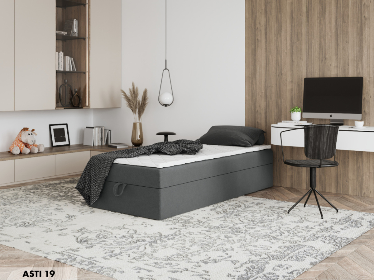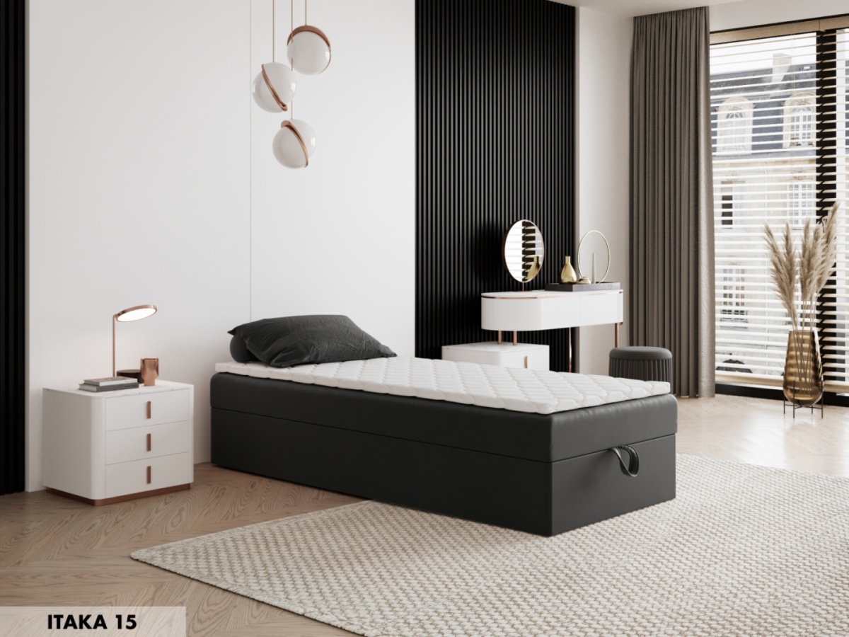 Dzięki eleganckiemu designowi i funkcjonalnemu pojemnikowi na pościel, jest idealnym wyborem do mniejszych sypialni, gdzie liczy się każdy centymetr przestrzeni.