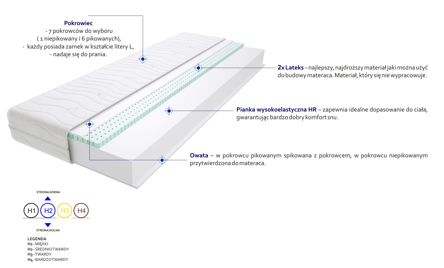2x Lateks, Pianka wysokoelastyczna HR, Pokrowiec, Włókno klimatyzujące